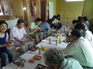 その後、お施主様のお心遣いのお弁当や差し入れを皆でお腹いっぱいいただきました。
