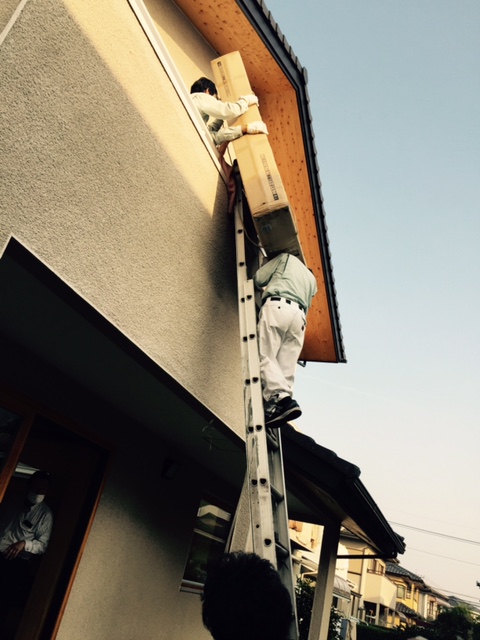 これは、階段は無理と判断しまして、いざ、吹き抜けから・・・ もちろん、養生はしっかりと‼