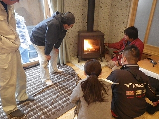 ストーブに火を入れ説明を受けていると、じんわり暖かさが広がっていきます。