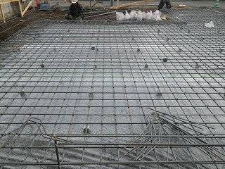配筋作業が終わると、次は土間コンクリート施工になります。