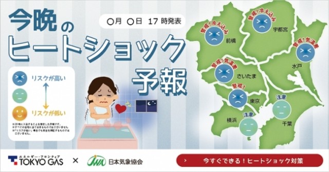 東京ガスと日本気象協会は、≪今晩のヒートショック予報≫を